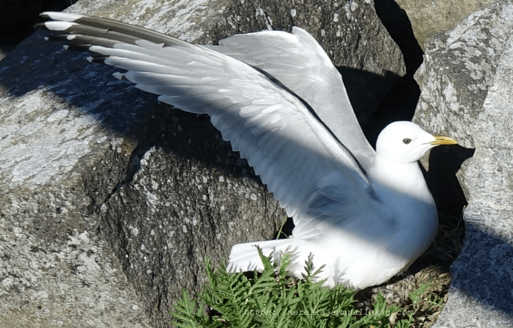 Nyt oli sitten laiturin vieressä oleva lokin pesä saanut uusia asukkeja. Mielestäni niitä on kaksi ja yksi on vielä kuoren sisällä. Muutenhan en tuolla lailla kuvaisikaan, mutta kun on mentävä laituria pitkin maihin. Sarjakuvauksella otin, joista jopa pari oli melko kelpoja.