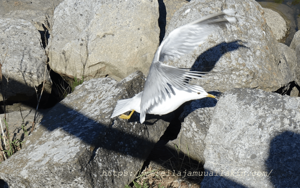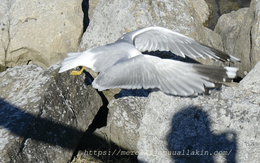 Mutta lokki ei tietenkään meidän kävelystä tykännyt, vaan kirmaisi lentoon.