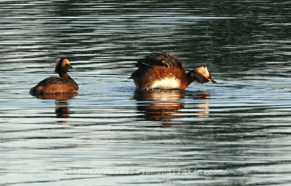 Nämä Mustakurkku-uikut pyörivät tässä useammankin pariskunnan voimin. Välillä pitää siustiytyä ja sitten vedet pöyhistellä pois.