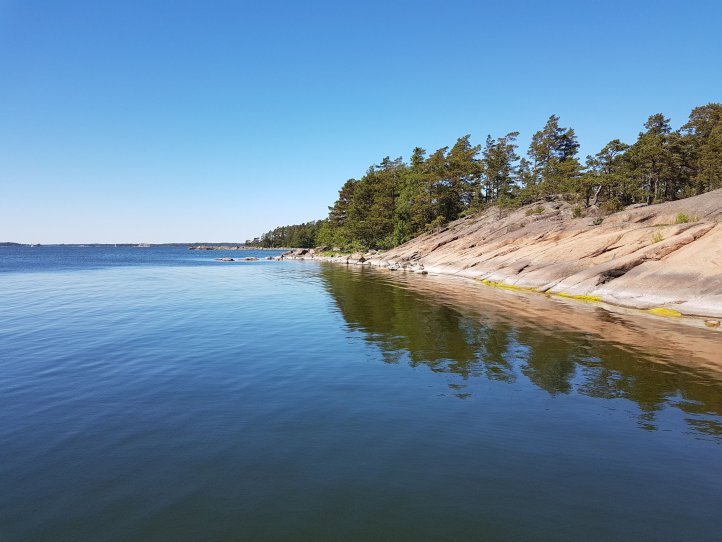 Tämä lahdenpohja on, kuten kuva kertoo, täysin tyyni, vaikka tuolla ”selällä” tuuleekin kuvan ottohetkellä 6-8 m/s idän puolelta.