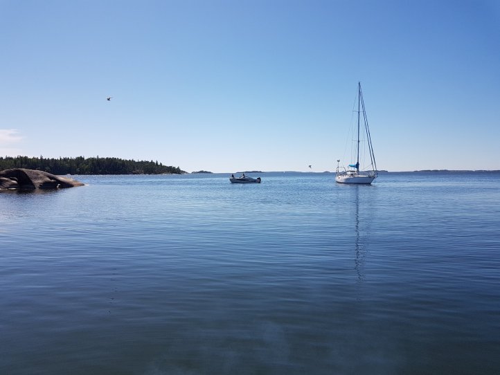 Väylällä ei hetkeen näkynyt oikeastaan muita, kuin purjeveneitä. Ei edes kerran tunnissa mene moottorivenettä ohi tuolla väylällä.