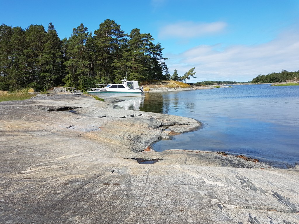 Kallioon on laitettu moneenkin kohtaan kiinnityskoukkuja, joten helppo kiinnittää vene sileille kallioille.