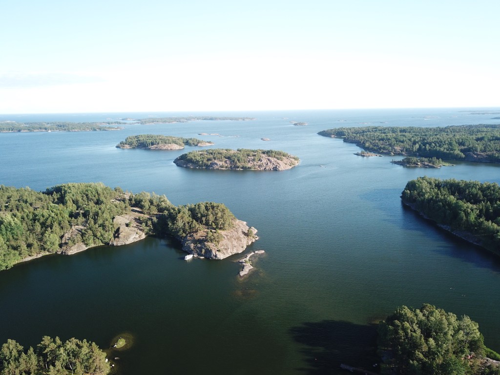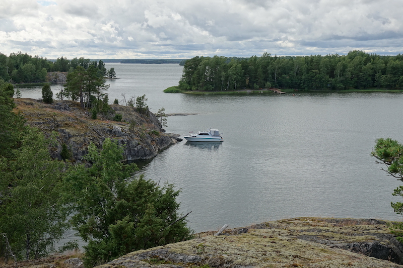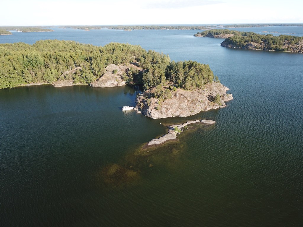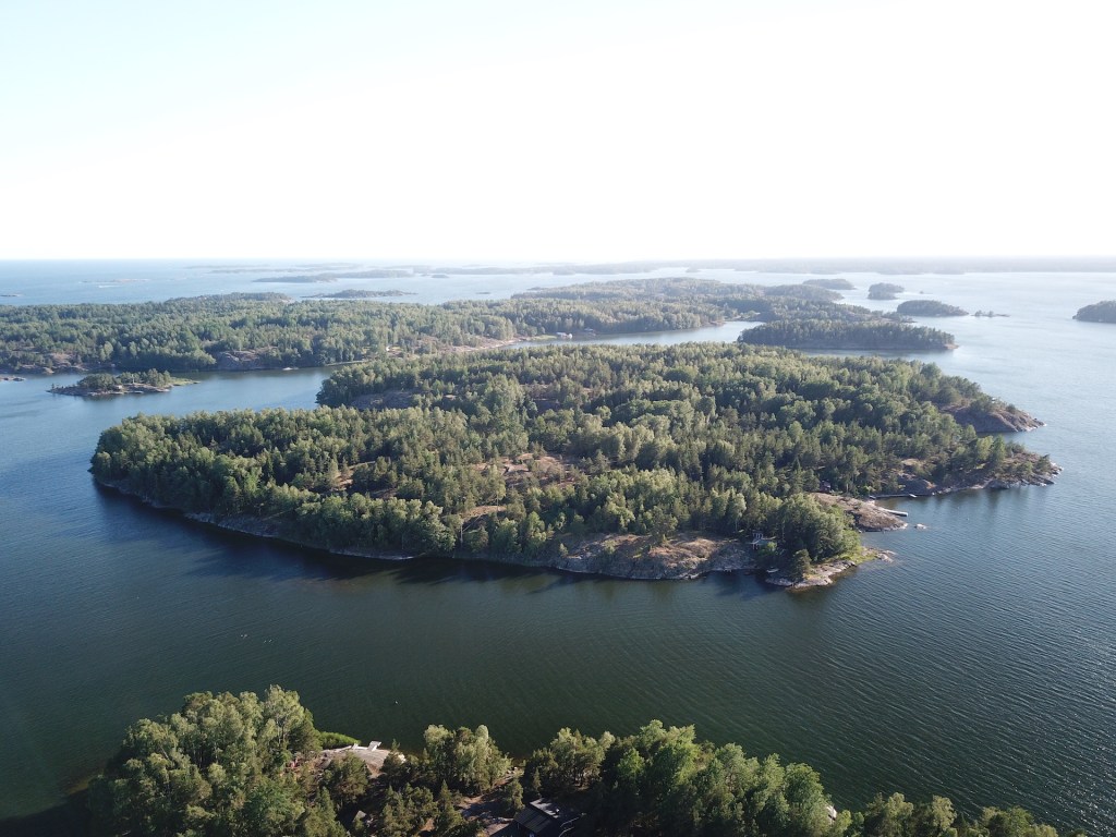 Tuossa naapurisaaressa näkyy olevan useampikin mökki, mutta liikennettä ei näy olevan.