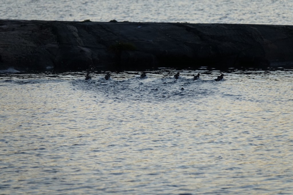 Uikut kokoontuivat useamminkin tuonne lahdenpohjaan. Ilmeisesti hyvät ruoka-apajat. Kuka sitä nyt turhaan uiskentelisi?