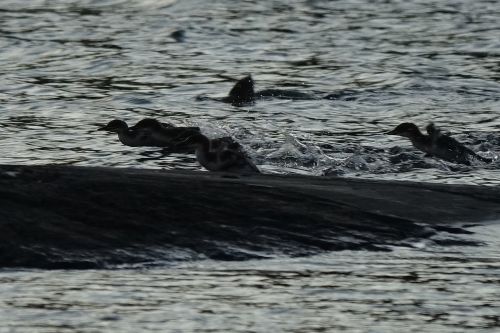 Kun merimetso saapui paikalle, uikkuemo vei poikasensa pois. Oisko niin, että tuo musta paholainen voisi välipalaksi palleroisen napata?