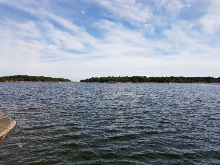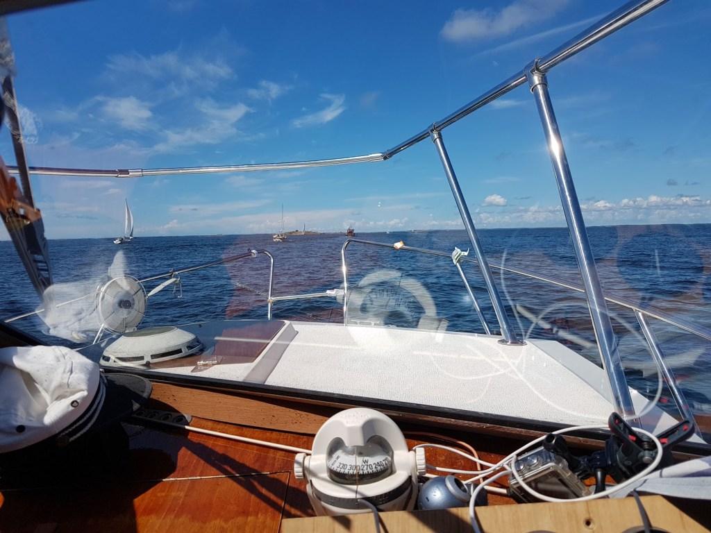 Eilen näytti siltä, että ennen kolmea ei kannata poistua aallonmurtajien suojista. Mutta onneksemme tänään ei tuullutkaan enää juuri lainkaan. Mitä nyt välillä aukeimmilla paikoilla vanha maininki vähän pani vanhan rouvan nyökkäilemään.