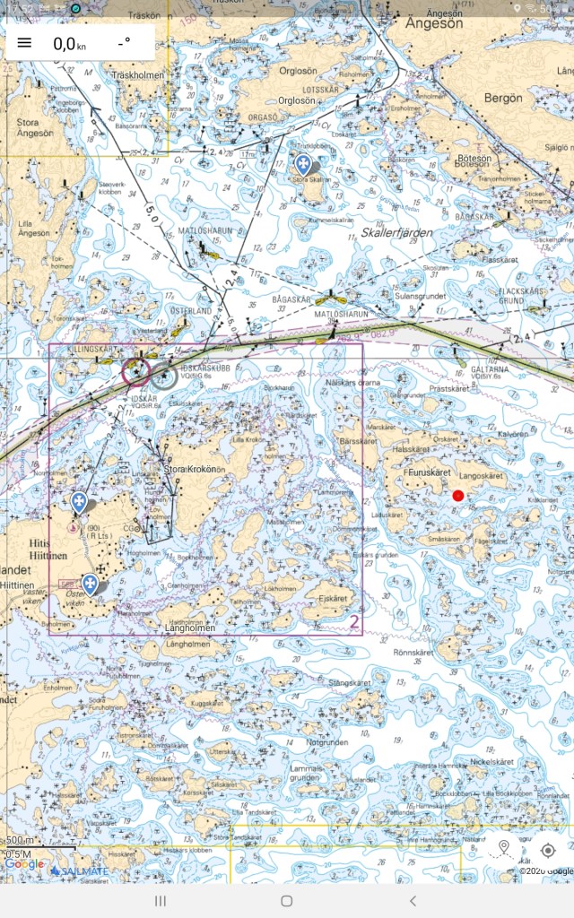 Vaikka merikortti näyttää, että pelkkää kivikkoa koko alue, niin kyllä täällä vettä riittää kiviä kierrellessä kaikille kölin allekin.