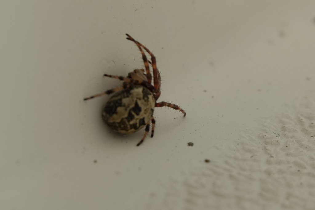 Näitä riittää veneessä, oikeesti. Verkkoja kutovat ympäri venettä. Onneksi pysyvät ulkopuolella. Tämä yksilö sentin pituinen ilman jalkoja. On kuulemma sama ongelma muillakin veneilijöillä.