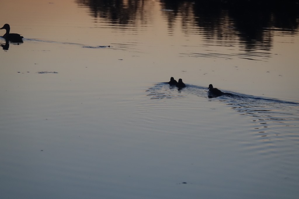 Veneen lattia narisee, niin emo komensi poikaset pois läheltä venettä.