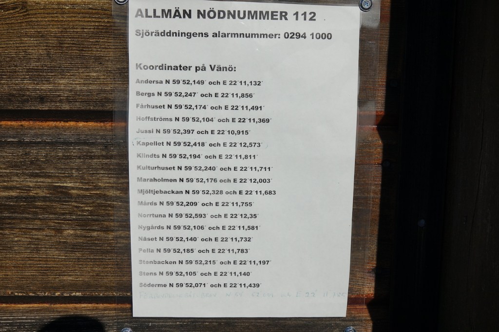 Kappelin seinässä, ulkopuolella, on paikallinen ”osoiteluettelo”