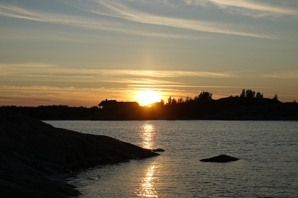 Väylältä tulee isompien veneiden aaltoja, mutta onneksi ovat jo laantuneet sen verran, ettei oikeestaan haittaa. Tuleepahan tunne kuin kehdossa olisi.