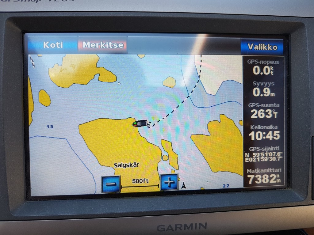 Meidän piti mennä ihan toiseen saareen, mutta siellä olikin pari taloa ilmestynyt, joita ei näkynyt missään kartoissa.
