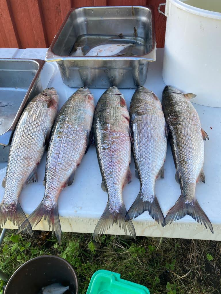 Toinen, joka ei kylläkään aikaa vienyt juurikaan: Timppa oli saanut verkoilla komeita siikoja, ja laittoi viestiä, että tuleppa hakemaan graavattua kalaa.