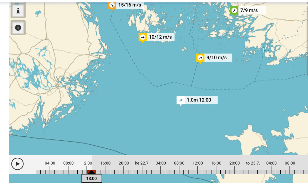 Tuuli oli tuossa vaiheessa kerennyt voimistua lähelle kymmentä metriä/sekuntti ja aallot sen mukaan kasvaneet.