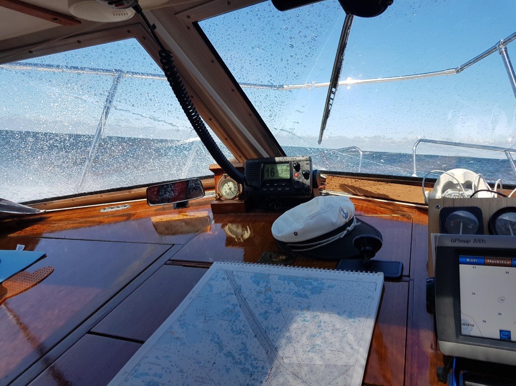 Siispä sivuvastaista köröteltiin noin 15 solmun nopeudella pärskeiden lyödessä välillä kannelle ja jopa yli veneen, kun tuli se seitsemäs iso aalto.