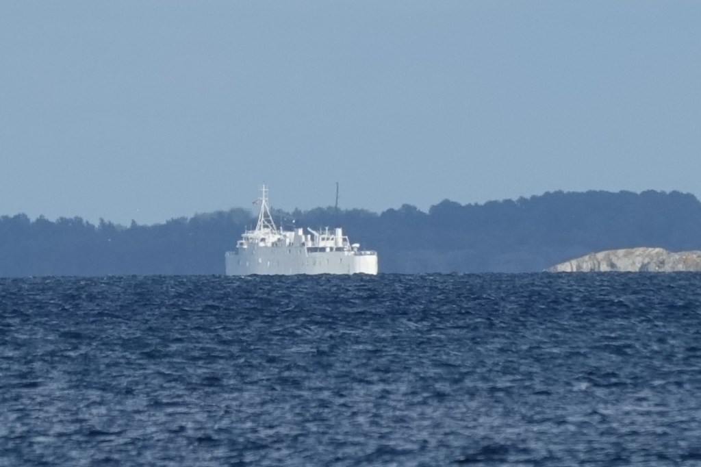 Joku ihmeellinen valkoinen laiva meni tuolla Seglingen lännen puoleisella väylällä pohjoiseen päin.