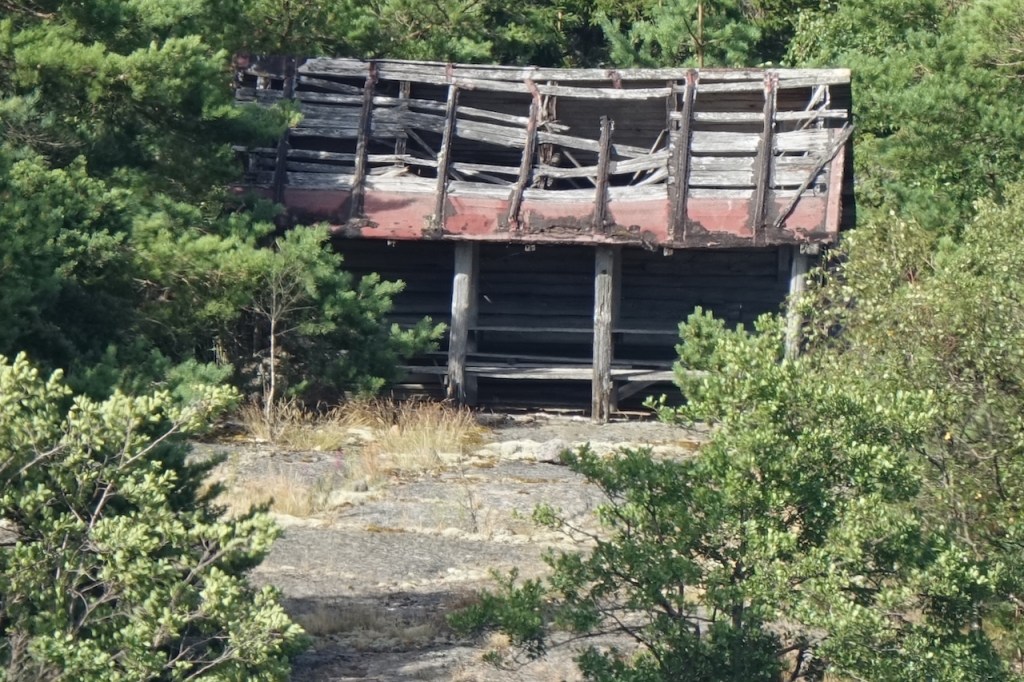Vastakkaisen saaren mökki on pikkaisen käytön puutteessa päässyt huonolle hapelle.