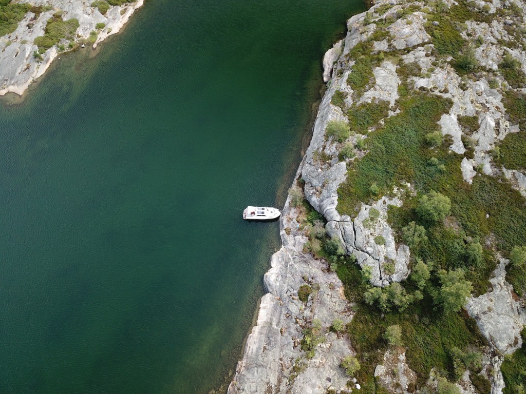 Vähän matkaa oikealle veneestämme, perästä katsoen, voi tulla isommallakin kiululla. Ja samalla lailla, senkun astuu kalliolle.