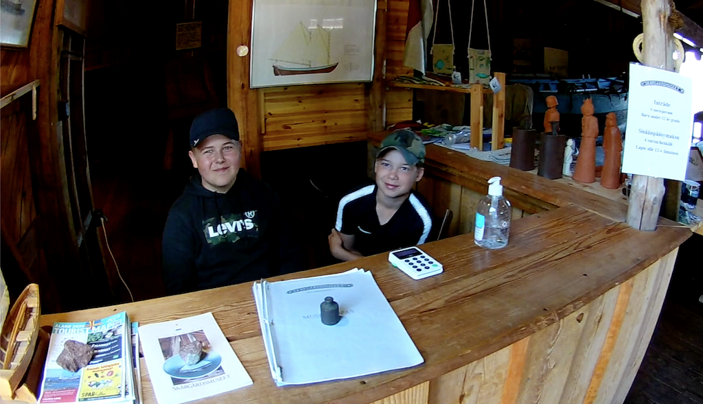 Kaksi iloista nuorta miehenalkua kesätöissä toivotti tervetulot ja niin saatiitn tuulahdus saaristolaisten elämään. Ja yllätys 😉 suuri, kun veneitä oli museo täys.