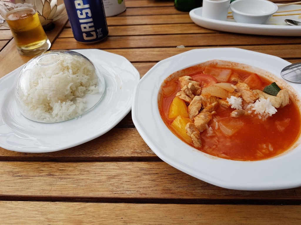 Tietysti olihan se vaihtelua meidän ruokiin, mutta ei tämä nyt sykähdyttänyt. Semmosen seiskan voisi arvosteluksi antaa. Vähän pliisua oli. Se hyvä puoli näissä itämaisissa ruuissa on, ettei tule semmoista ähkyoloa. Otettiin kuitenkin alku- ja pääruuat.