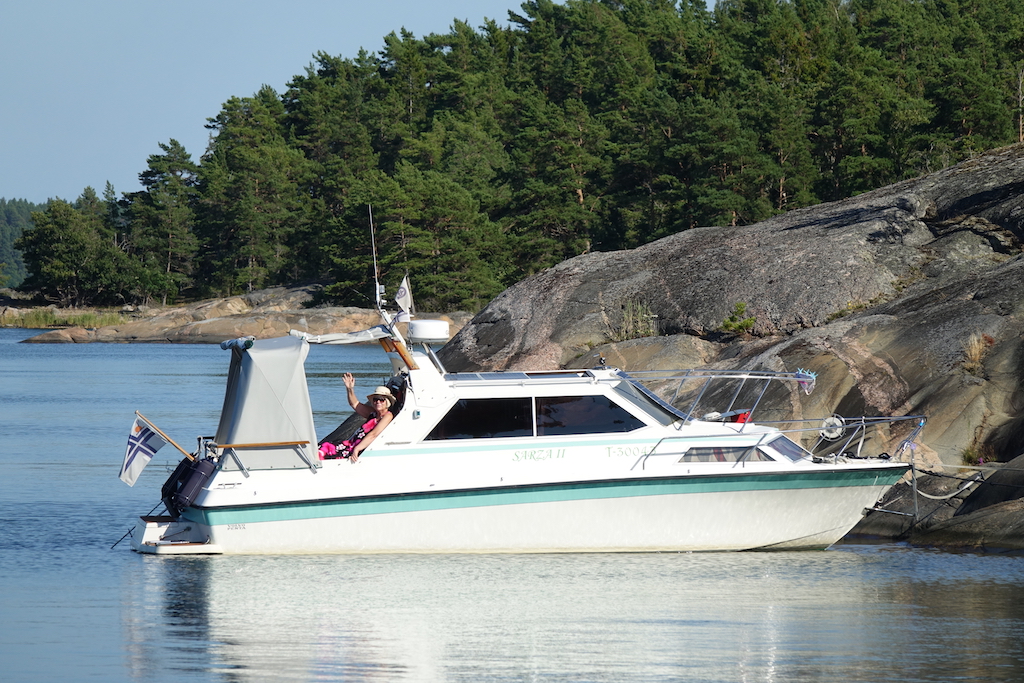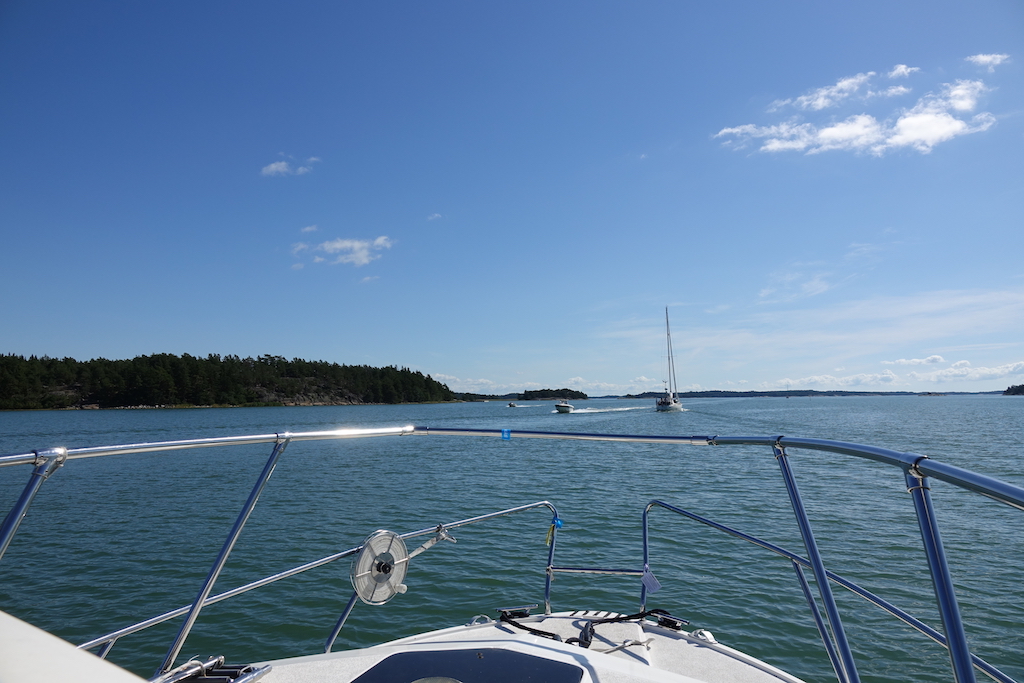 Heti Iniöstä itään päin lähtiessä oli jopa ”ruuhkaa”, kun pari purkkaria edessämme ja yksi motorbootti vastaan tuli.