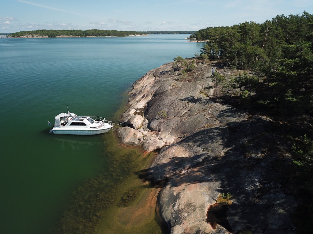 Vasta kolmas rantautumiskohta miellytti meitä molempia, joten ankkuri pohjaan ja liinat/köydet maihin kiinni.