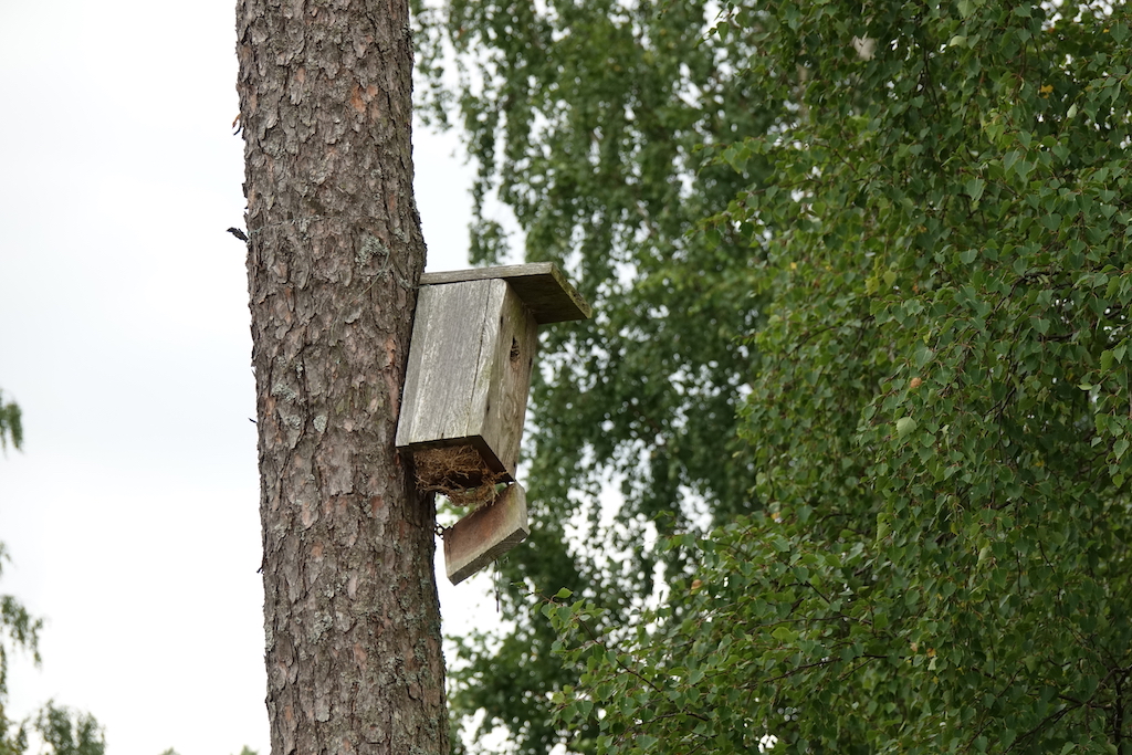 Riittää lapsilla ihmettelemistä linnunpöntöistäkin. Osa oli ihan ok, mutta, kuten tämä, hieman vaatisi ensi pesimäkaudelle korjausta.