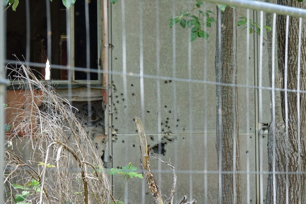 Kahvilan jälkeen tulee tien oikealla puolella vanhoja asuintaloja, joita nykyisin on käytetty sekä puolustusvoimien että poliisin kaupunkisodan harjoituskohteina.
