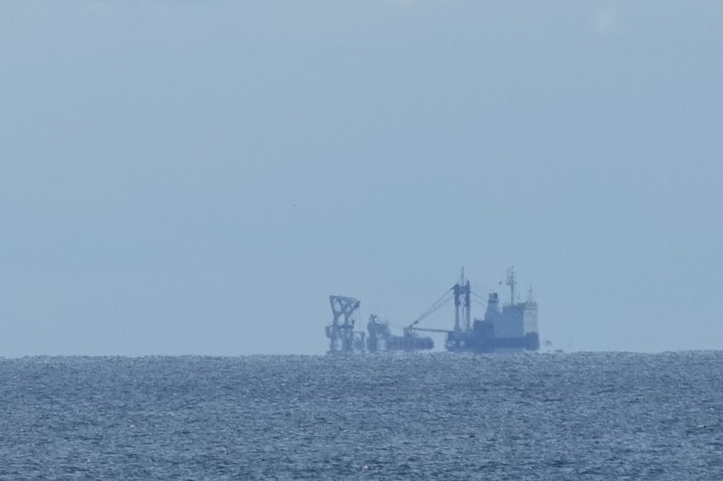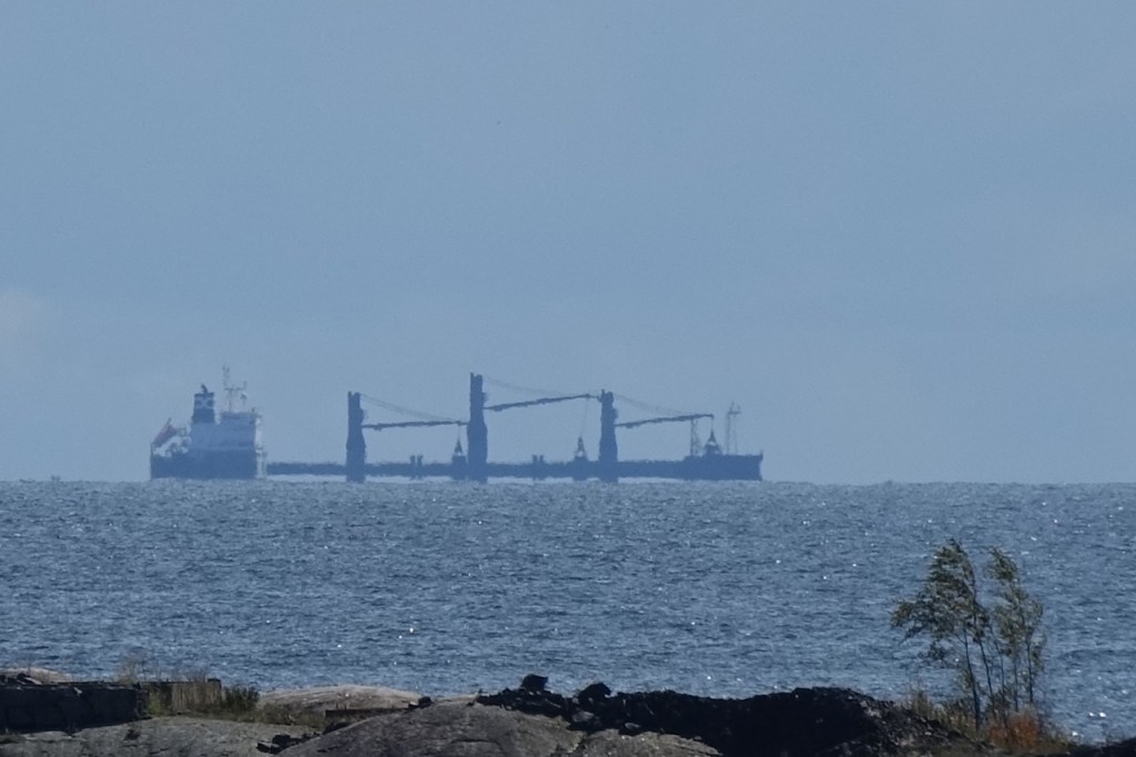 Aika jännästi meren kaartuminen hävittää isosta laivastakin osan. Eihän tämä matka kuitenkaan tuonne ole kuin korkeintaan parikymmentä kilometriä.