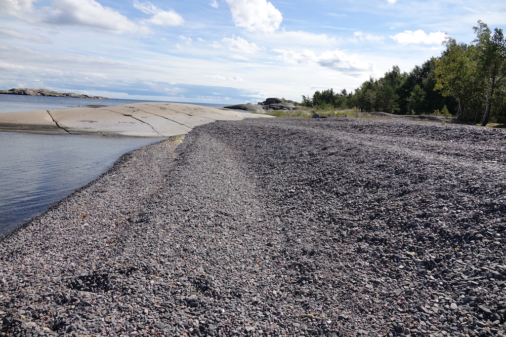 Tähän kohtaan rantaa pääsee idästä päin tuulemaan ja sen mukana tuomia aaltoja, jotka sitten muokanneet kerrostumia, kuin maa olisi noussut. Onhan se tietysti noussutkin, sadassa vuodessa jopa puoli metriä.