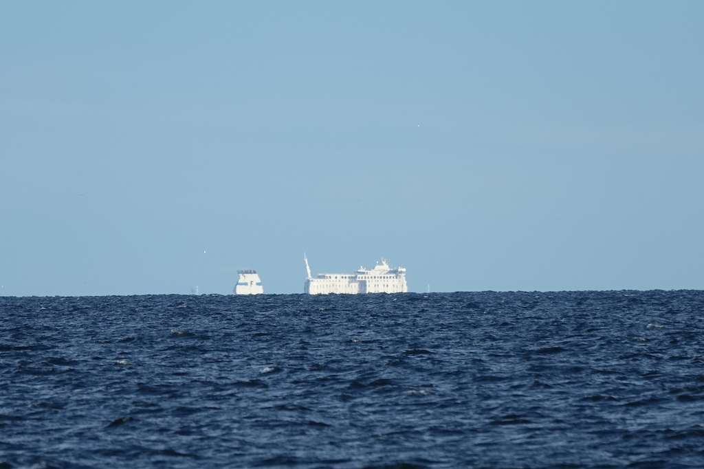 Samoilla suunnilla pari laivaakin oli menossa, mutta meren kaartumisen johdosta, ei näkynyt kuin osa ylärakenteista. Kaukana taisivat mennä kun koko runko hävinnyt mereen.