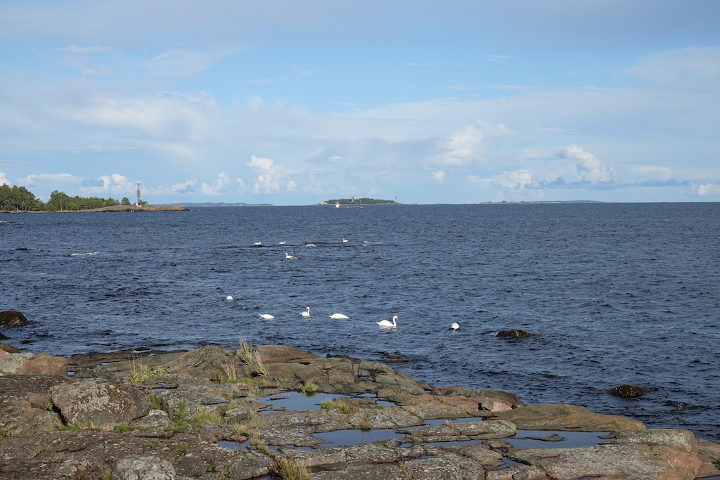 Kun veneelle päästiin, oli muutama joutsen veryttelemässä aivan aallonmurtajan vieressä.