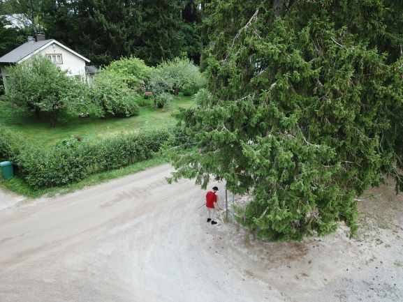 Koska paikka sijaitsee melkeimpä omakotitaloalueella, laitteli sulho bestmanin kanssa opasteita tuleville vieraille.
