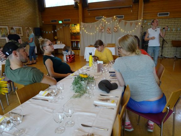 Zoomailin kauempaa ”johtoryhmän” viimeitä palaveria ja ohjeiden antoa. Kun lähemmäksi tulin, irtos pientä hymyäkin. Onhan siinä varmaankin monta liikkuvaa osaa, joita pitää huomioida seuraavana päivänä. Mut näähän on jo konkareita, olleet jo monissa häissä, kuka enempi kuka vähempi, mukana järkkäämässä kaasoina ja bestmanninä.