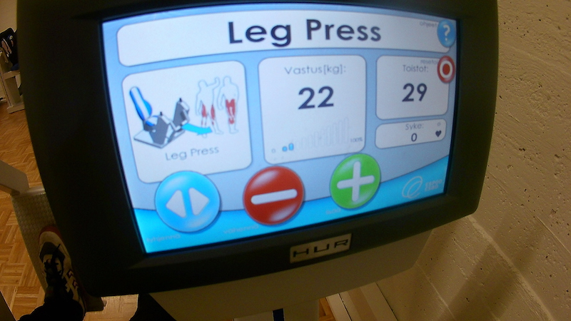 Nämä ovat kuulemma ”vanhat” laitteet ja tuotu yläkerran treenisalista, kun sinne oli saatu uudet laitteet. Kuinkahan hienot ne sitten mahtaakaan olla?