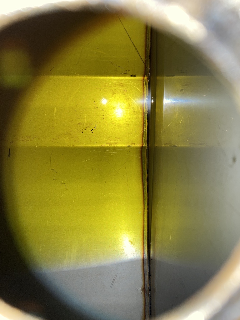 Tuossa kuvassa näkyy pieniä jäämiä edellisestä puhdistuksesta, jonka tein varmaankin 4-5 vuotta sitten. Sen jälkeen ei ole ongelmaa ollut, vaikka en ole käyttänyt enää pariin vuoteen kasvustonestomyrkkyä naftan joukossa. Mutta hyvä on silti tarkistaa.