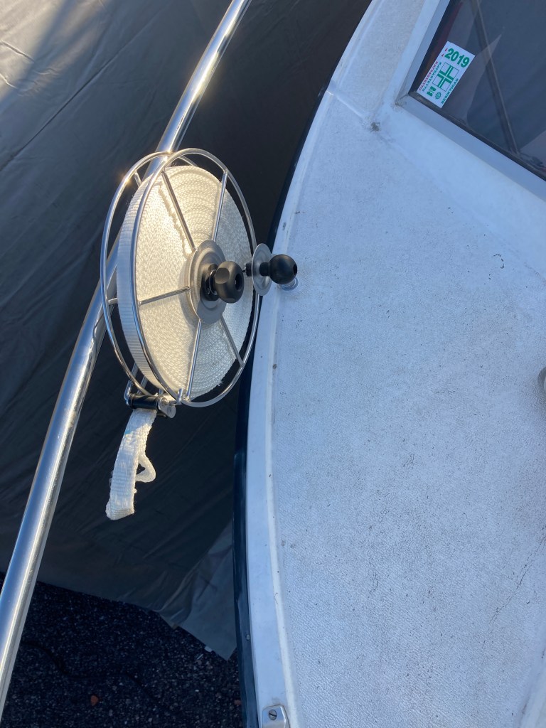 Nyt kun kaide oli paikoillaan, asensin myös yhden liinakelan lisää helpottamaan rantaan kiinnitymistä.