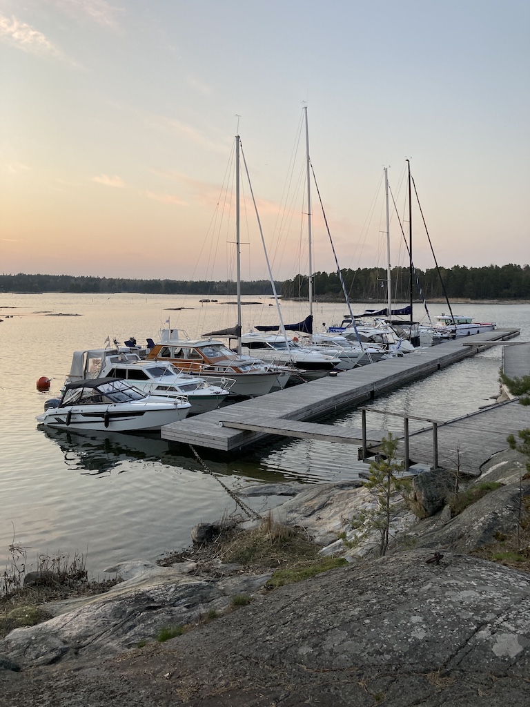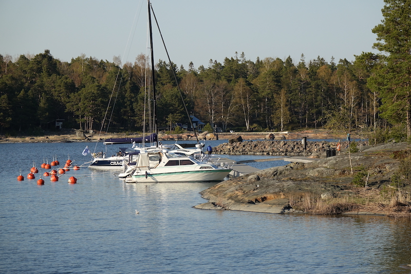 Aurinkoisen ja kevyen itätuulen saattelemana huristelimme ulkoväylää pitkin, tarkoituksena rantautua Bylandetiin. Vaan ei rantauduttu. Vesi oli matalalla, tuoden vihreän levän esiin kallioille samalla saaden ne petollisen liukkaiksi. Itsesuojeluvaisto esti meitä rantautuman lemppisaareen. Jatkoimme matkaa kohti Stora Svartö:tä, vastapäätä Lähteelää, jossa kelluva laituri eikä tietoakaan levästä. Kolme venettä oli jo valmiiksi, joista yksi poistui hetken päästä paikalta. Mutta koska huomenna on helatorstai, alkoi alkuillasta tulla veneitä. Ja niitä tulikin jonniin verran.