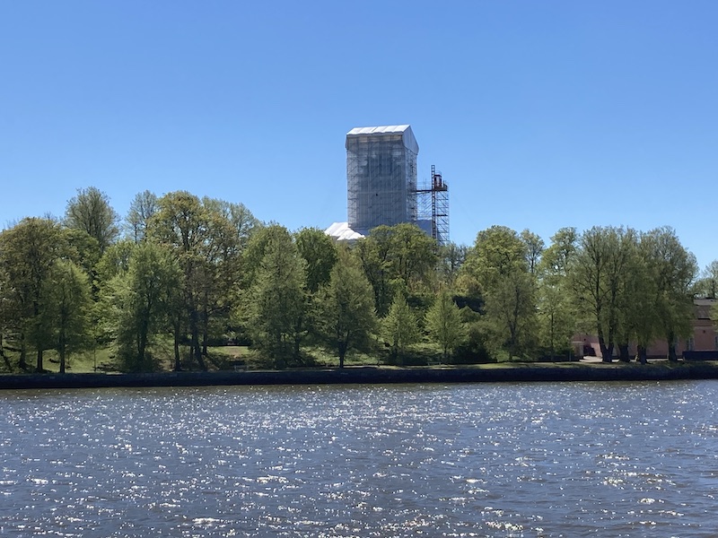 Lounaasta noin 10 m/s tuuli ei alkumatkalla paljon haitannut, varsinkin kun ajeltiin Suomenlinnan pohjoispuolelta, jonka kirkontorni on huputettu ja siitä Hevossalmen kautta melkein suojassa.