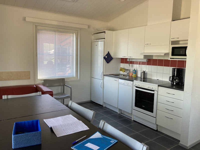 Lisäksi on samassa rakennuksessa kunnon keittiö ja oleskelutila.