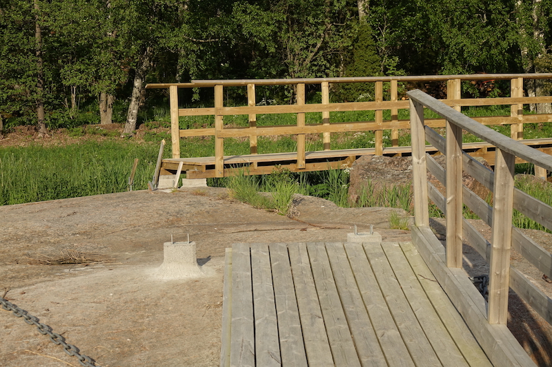 Tänne on rakennettu uusi silta tuonne keittokatselle ja puuceelle, joten nyt ei tarvitse kostean heinikon läpi mennä. Ovat oikein kunnon anturit valaneet, joten ennakoitavissa pitkää ikää sillalle.