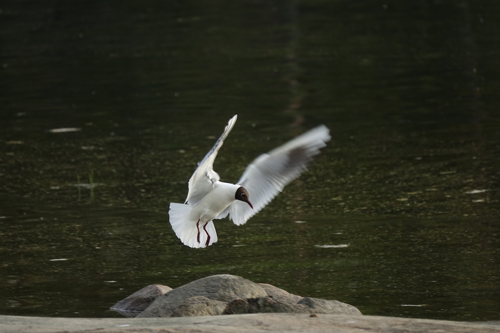 Lokki oli jahtaamassa pikkukaloja ja taisi saadakin yhden.