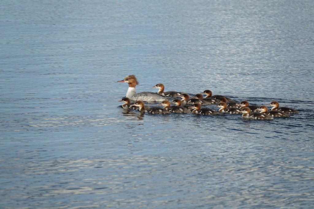 Paitsi paikkakuntalaiset. On siinä äipällä huollettavia. nämä ovatkin jo sen verran isoja, etteivät pääse emonsa selkään.