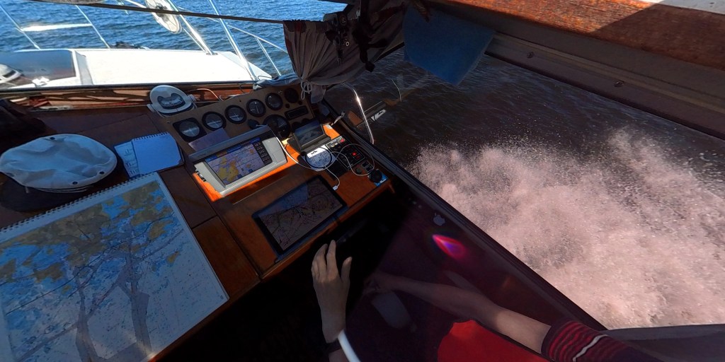 Kuten näkyy, kartta, plotteri ja tabletti, kaikissa kartta näkyvillä. Plotterissa vielä päällekkäistutka varmistaa, ettei ajettaisi minkään päälle, vaikkapa rysään, kuten olen joskus meinannut ajaa.