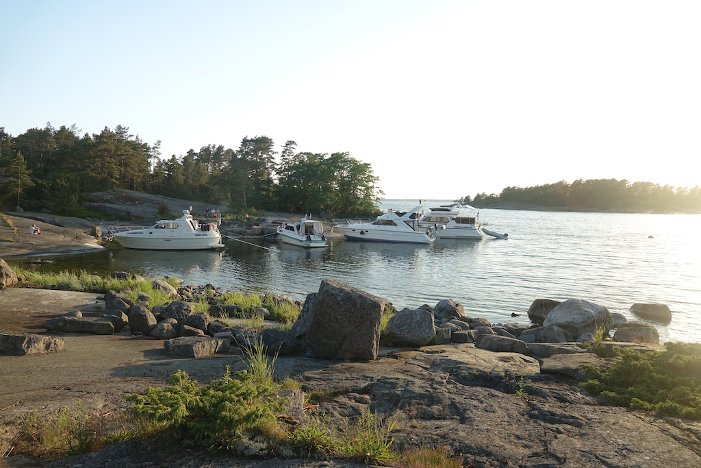 Yllätykseksemme pohjoislahdukassa olikin jo useampi vene, muuta onneksi meidän vakiopaikka oli vapaa. Ankkuria ei saatu ihan siihen paikkaan laskettua, mihin yleensä, koska olisi mennyt ristiin tuon vasemman puoleisen veneen ankkurin kanssa.