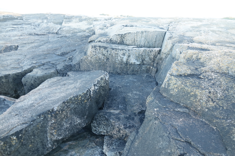 Eroosio irroittelee kalliosta isojakin lohkareita. Vesi menee halkeemiin ja pakkanen tekee tehtävänsä. Saattaapi myrskyn aallotkin auttaa siinä vaiheessa, koska jäähän on hyvä liukaste.
