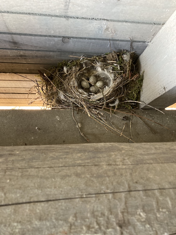 Ruuan tein veneessä, koska keittokatoksessa oli västäräkin pesä. Ei ollut nyt paikalla, mutta kun lenkiltä palattiin, oli hautomassa.