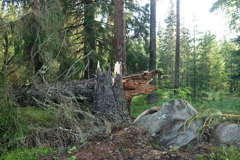Oikein uutisissakin oli siitä maininta tien nimeä myöten. Emme kuitenkaan löytäneet kuin tämän yli-ikäsen kaatuneen kuusen.
