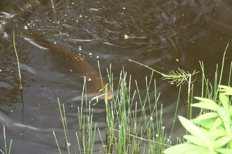 Pekalla on kasvamassa jonkin verran kaloja ja tässä ilmeisesti kaveri odottaa , että heittäisin jotain sille. Sen homman jätin nytkin Pekalle.