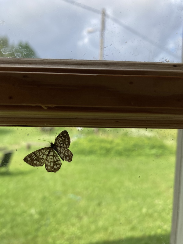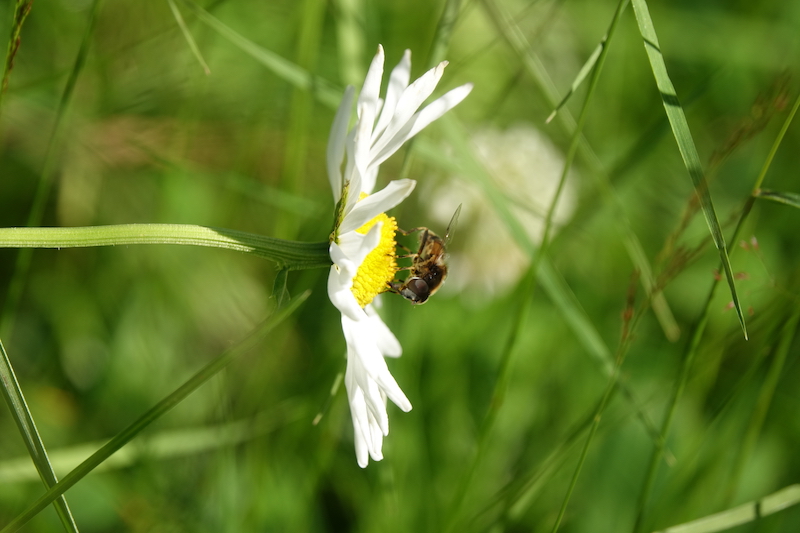 Pihassa, mökin ja saunan välissä, oli päivänkakkaroita, jotka vetivät puoleensa kaiken maailman lentäviä.